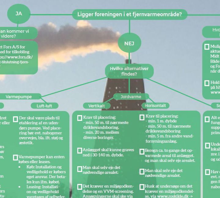 - Hvilke muligheder har I til at omstille til grøn varmeforsyning alt efter om foreningen ligger i eller udenfor et fjernvarmeområde?