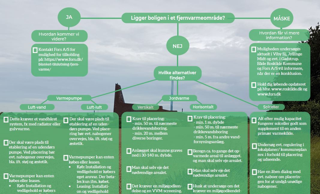 - Hvilke muligheder har I til at omstille til grøn varmeomstilling, alt efter om I er bosat i eller udenfor et fjernvarmeområde?