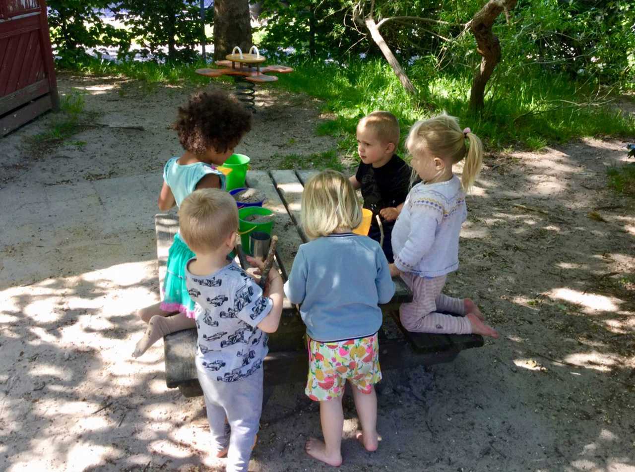 Vi har fokus på at skabe gode læringsmiljøer både inden- og udenfor. Vi indretter vores grupperum med afgrænsede læringsmiljøer, så der både er ro til fordybelse og til den aktive leg.